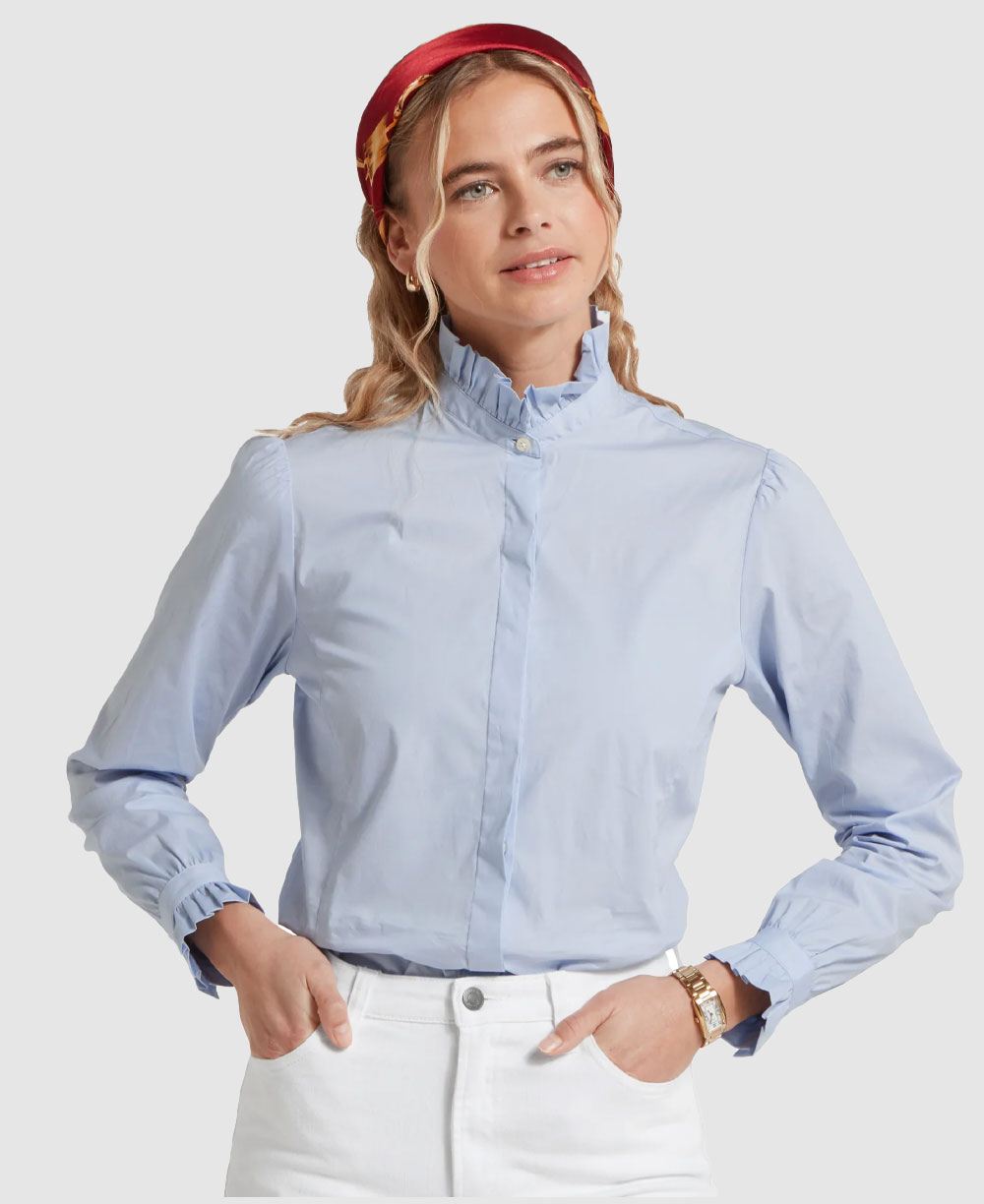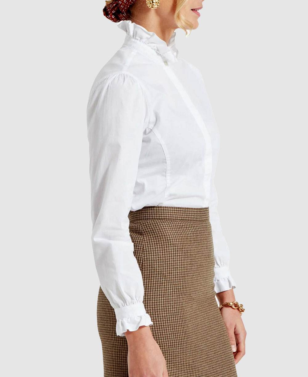 Elegant and refined, the Schoffel Fakenham Shirt brings timeless charm to modern dressing. Expertly crafted from smooth cotton poplin, this beautifully tailored shirt features pie crust frill detailing at the collar and cuffs, offering a subtle nod to vintage inspired style.