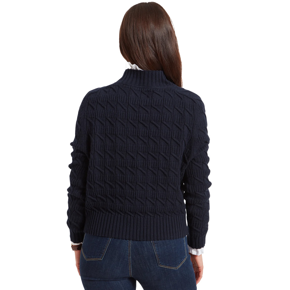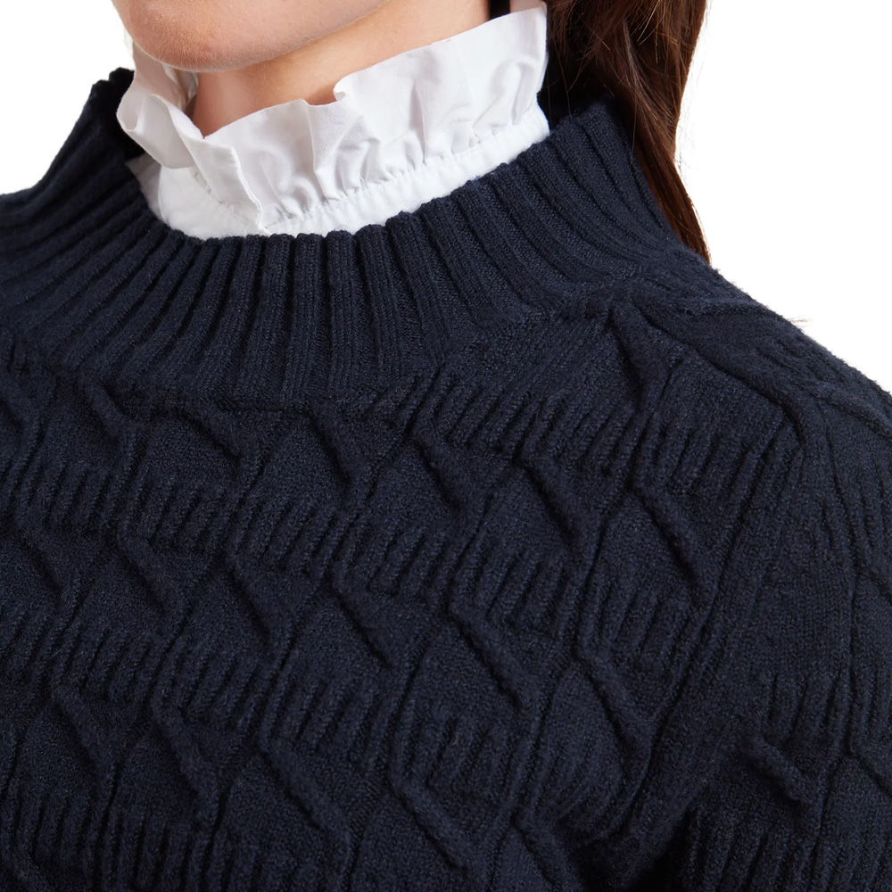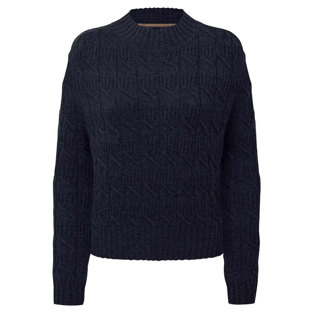 A supersoft cable-knit jumper with a high crew neck—classic, cosy, and built to last.